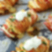 PAPA GRANDE HASSELBACK RELLENA DE ( JAMON CON QUESOY TOCINO Y CREMA PIEZA $ 80..00$80.0080.00 MXN
